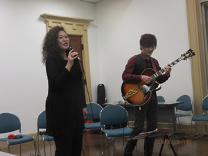 生ライブで凄い迫力ありました。どこか外国のジャズの本場で聞いてる ような錯覚に陥りました。これぞジャズだって感じ。 昨年大ブレークの湯田大道さん。 カッコいいねー 松原衣里(えり)さんは、”20年に一人”と称される日本人ばなれした ブルージーな歌声と表現力を持つジャズ・ボーカリストです。 名前のことだま師:丸田みどりさんの「自分の名前は是非大切に」 と印象深いお言葉をいただき大変勉強になりました。 クライマックス 参加者全員の記念撮影です