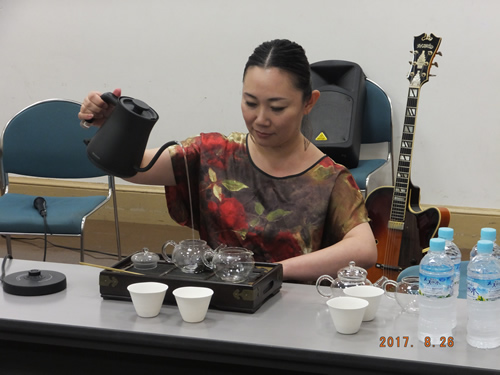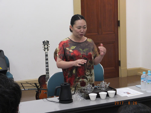 中国・国家茶芸師が語る〜中国茶の魅力と飲みくらべ〜高田小絵子(たかたさえこ)さん JAZZフェスティバル、ボーカル中川さつきさん、ギター湯田大道さん