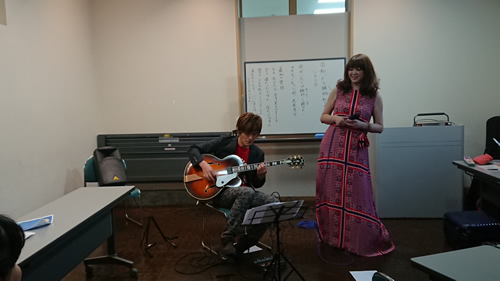 ジャズライブが始まりました。お馴染湯田大道さんのギター、伊東真紀さんボーカル 野村康子さん講演 プロが教える魅力ある声、話し方、表現力アップ アジアの歌姫 伊東真紀さんです 朗読は大変な迫力でした