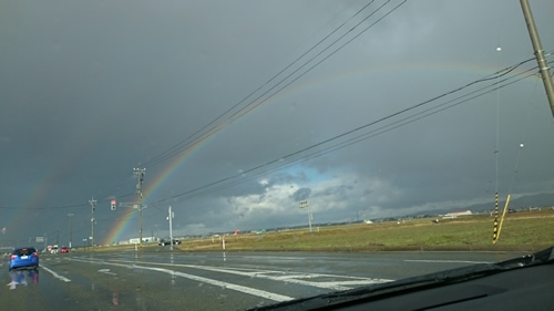 18.1日目.東尋坊に向かう途中、大きな虹に出会いました。