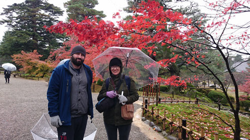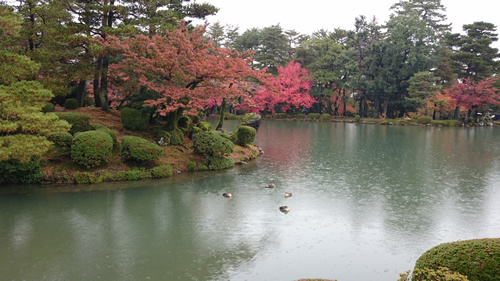 雨の兼六公園、そして紅葉が深まっていました。ラッキー