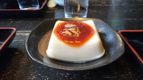 5.永平寺のお坊さんが食べています、名物ごま豆腐、こってりです。